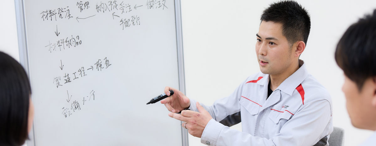 FITECの凄いところは、これまで築いてきた信頼により、FITECの社員がお客様の工場の一員として認められているところだと思います。工場の現場にも自由に足を運べますし、気軽に質問もできます。だからこそ、日々の業務では、お客様とのコミュニケーションがとても重要で、デスクワーク中心だった前職とは異なります。現場に出向いて、直接お客様の話を聞き、最適な提案につなげていくという仕事に楽しさとやりがいを感じています。